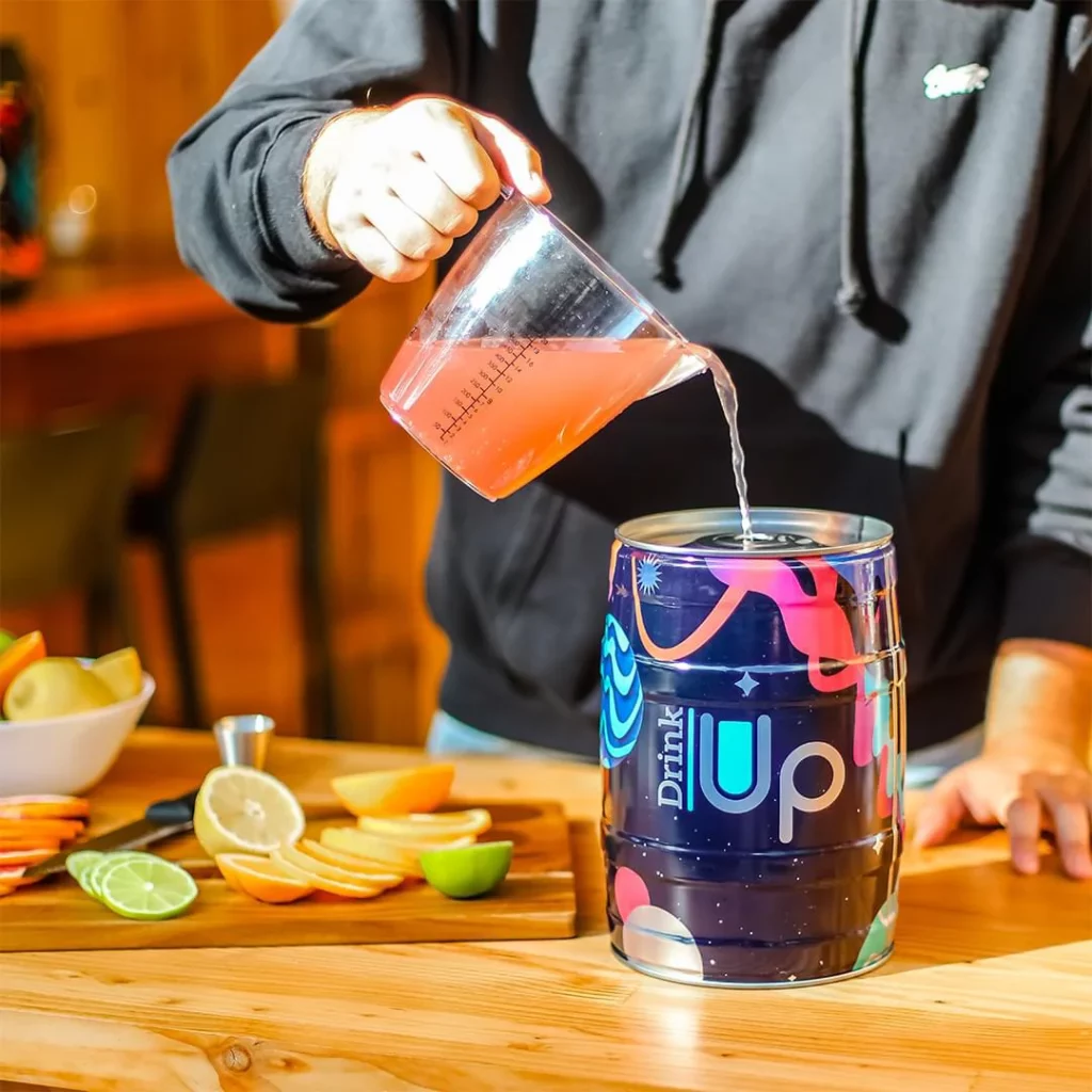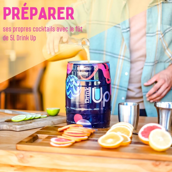 - Servir vos propres cocktails, avec ou sans alcool, directement dans un fût vide de 5L, fourni avec la tireuse.