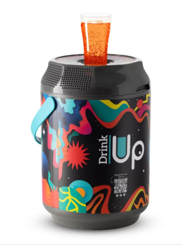 Le premier distributeur portable qui garde vos boissons (jus, cocktails, etc.) froides pendant 20 heures et remplit les verres par le bas. Profitez de notre DRINK UP n’importe où, n’importe quand !!